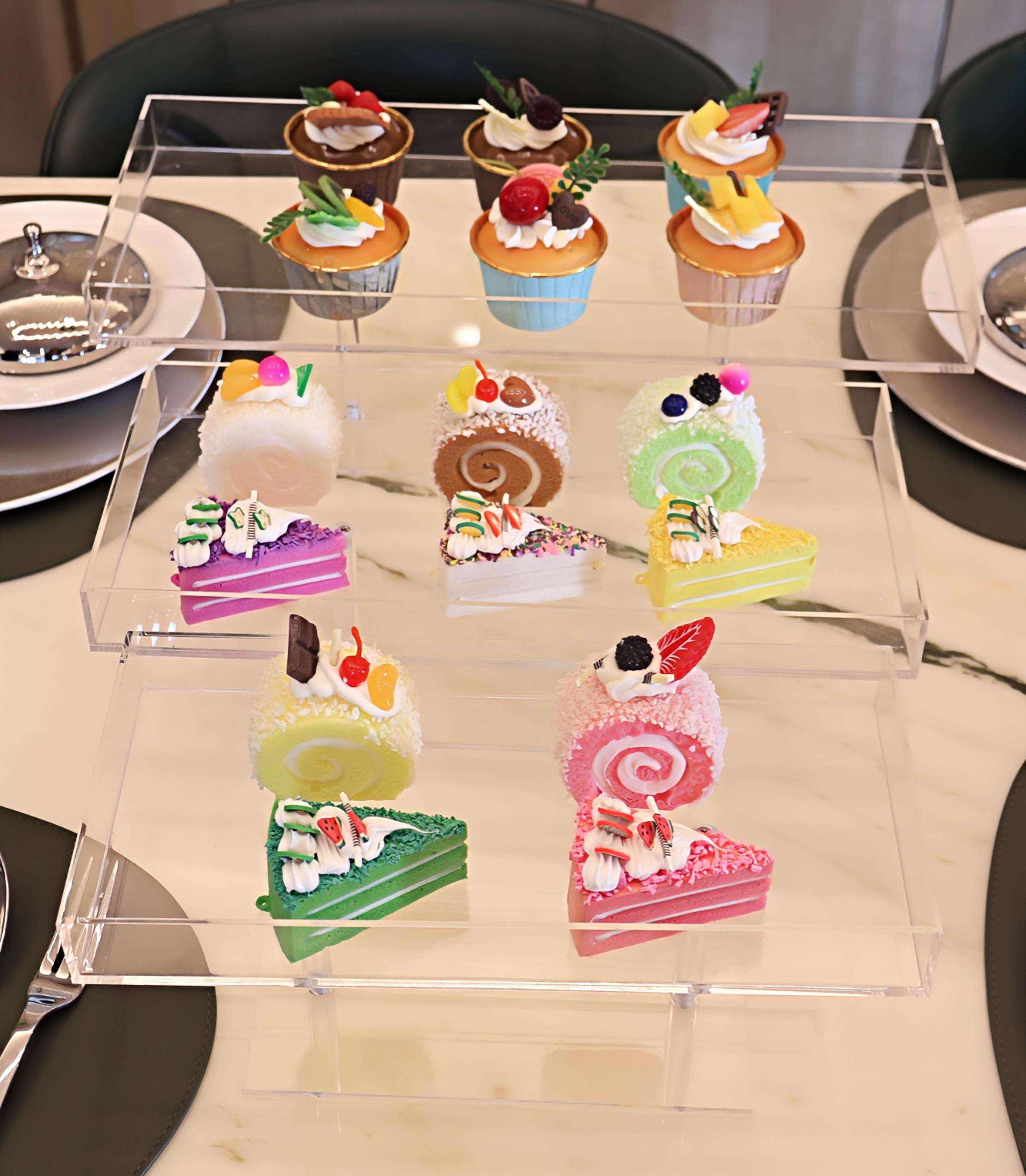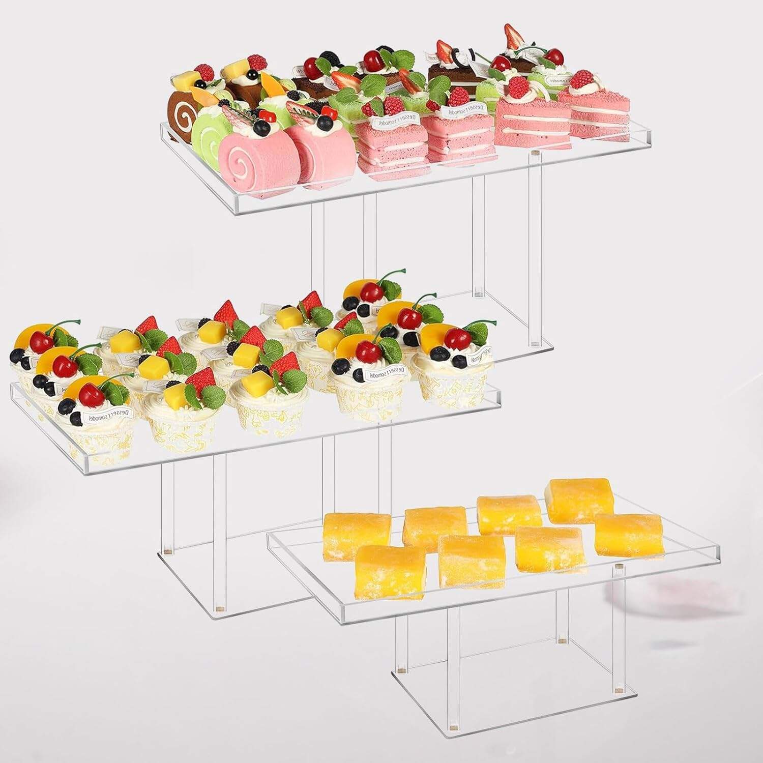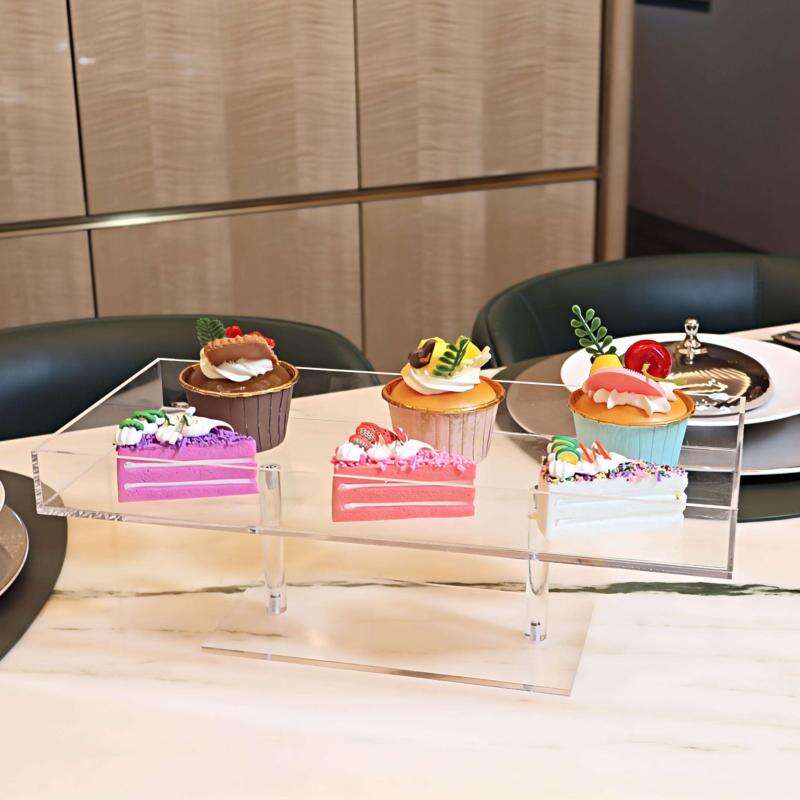 Easy to Install: The dessert stand is designed with acrylic rectangular trays and tall supports, making it simple and easy to assemble. The cupcake display stand set consists of cake stands of different sizes, convenient for storing various types of desserts.