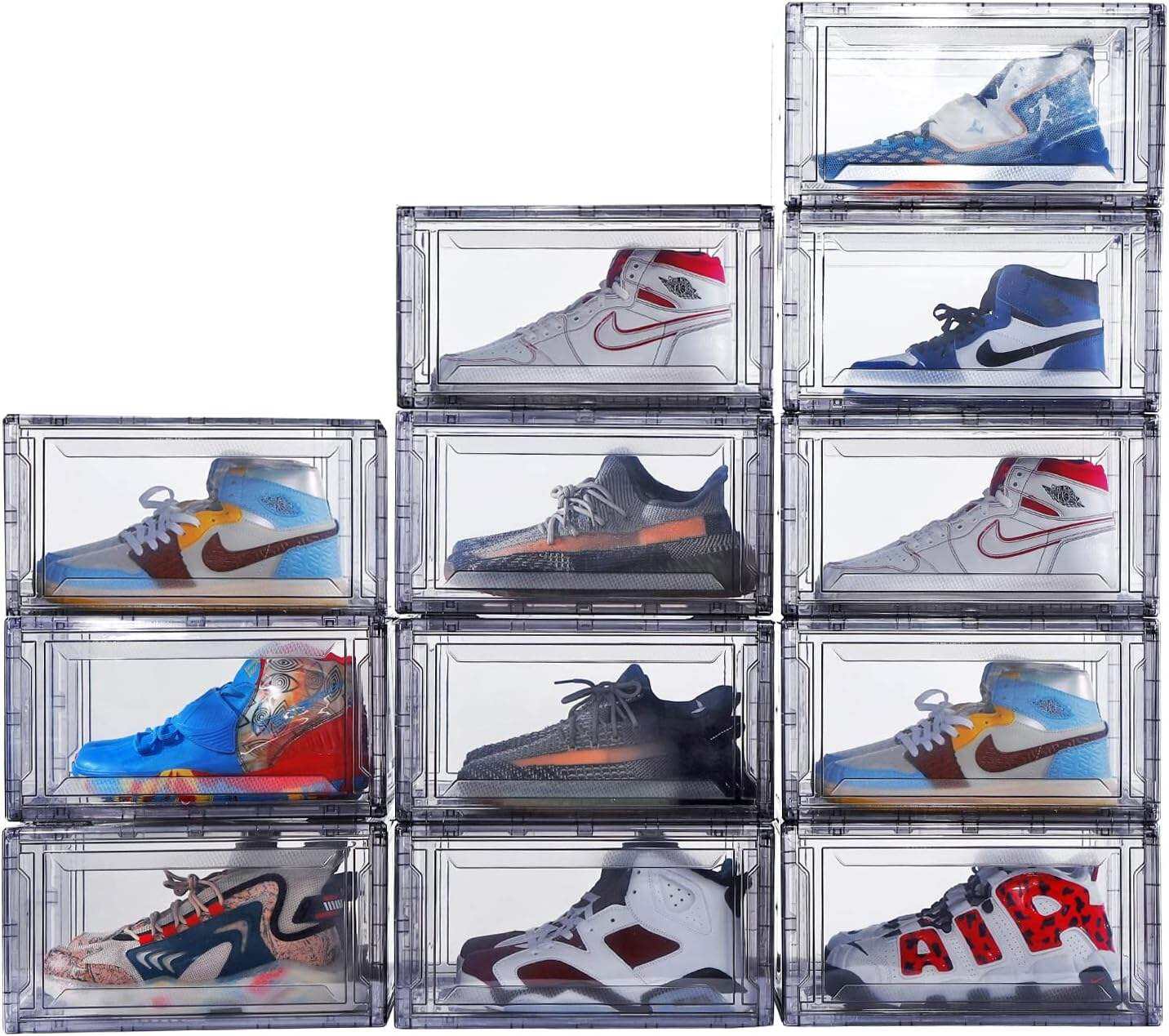 360°Completely See-Through: The shoe boxes clear plastic stackable allow your shoes to be displayed in all directions, Perfect to highlight a specific sneaker model, Whether it’s the front or the side, displaying their unique details. If-Match it with your favorite lights, and you will enter a sneaker collection home. Clear full-body let you find shoe you wanted immediately on every busy morning, and open the front door to easily grab it.